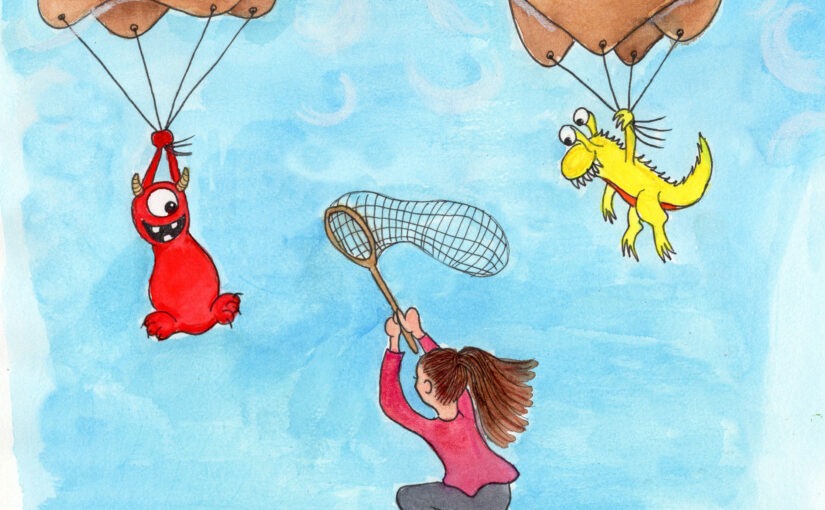 Dat is nog eens leuke post! Er plofte een envelop vol met luchtmonsters op de mat. Deze kwam van Johanna Howell: de illustratrice nam het woord ‘luchtmonsters’ letterlijk en tekende er zelf een illustratie bij. Dank!