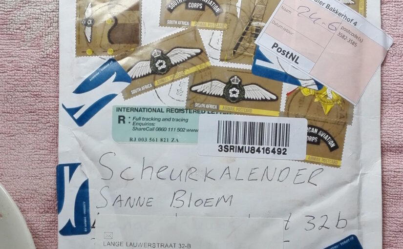 “De CD uit Zuid Afrika gaat na wéken van vergeten-mee-te-nemen en nee-ik-heb-een-nieuwe-mac-daar-kunnen-geen-cd’s-in eindelijk in een computer zodat de bijdragen op een stick konden worden gezet, zodat ze op de kalender kunnen worden gezet. Wat een mooie dag.”